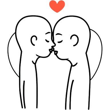 Boy with brown hair and girl with black hair and bangs, kissing emoji