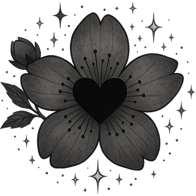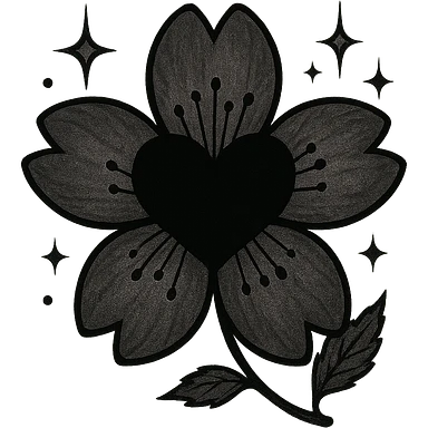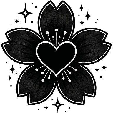 goth sakura heart, celestial theme, black heart with pink sakura and stars, mystical and romantic emoji