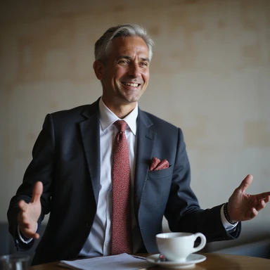 businessman encouraging customers emoji