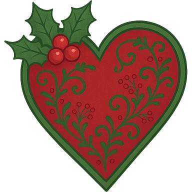 heart with Christmas theme, decorated with holly, red and green, remove background emoji