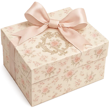 Elegant Rococo pale girly ditsy gift box , remove background emoji