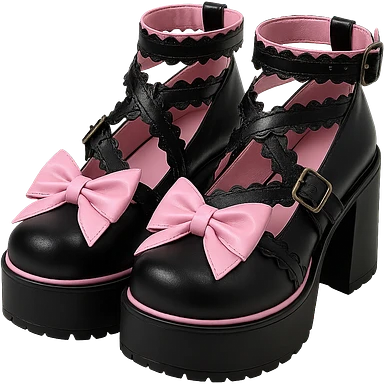 BLACKPINK-inspired gothic shoes, no hearts, black and pink, cute, remove background emoji