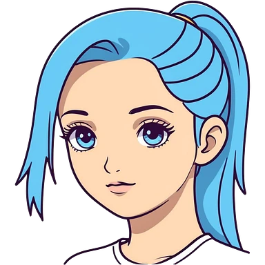 Pretty girl with sky blue eyes and long eyelashes with hair in ponytail emoji