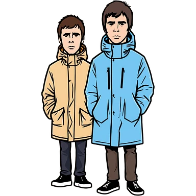 Create me a sticker of oasis band liam gallagher and noel gallagher at her peak (90s) emoji