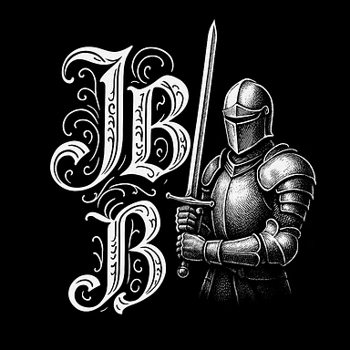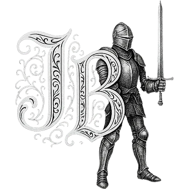 Сделай буквы JB также как на картинках и добавь рыцаря с мечом emoji