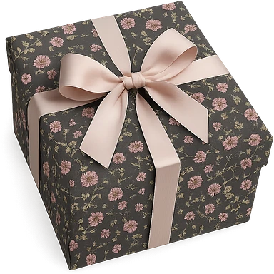 Elegant Rococo pale black pink ditsy floral gift box , remove background emoji