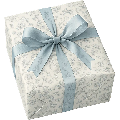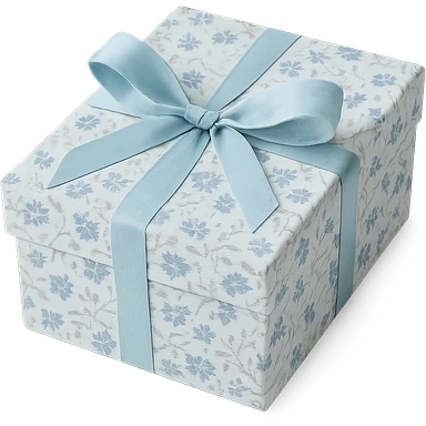 Elegant Rococo pale white blue ditsy floral gift box , remove background emoji