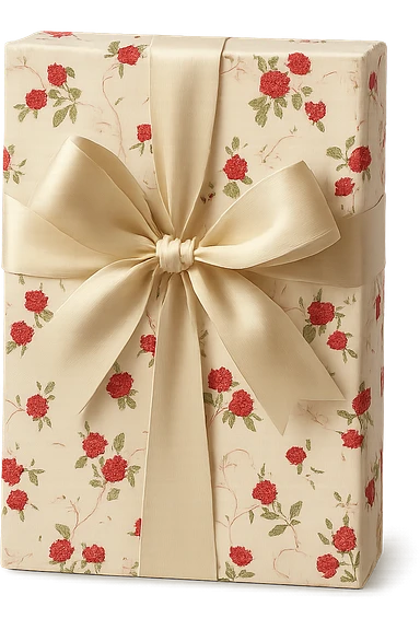 Elegant Rococo pale white red ditsy floral gift box , remove background emoji