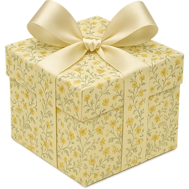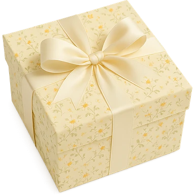 Elegant Rococo pale white yellow ditsy floral gift box , remove background emoji