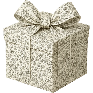 Elegant Rococo pale black white ditsy floral gift box , remove background emoji