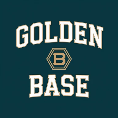 Replace the top word with Golden and the bottom word with base without changing the font and logo in the middle. emoji
