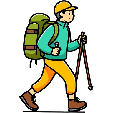 cartoon hiker with a tent and walking stick emoji