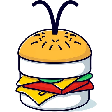 The popular Disney character Stitch sitting and eating a huge McDonalds hamburger emoji