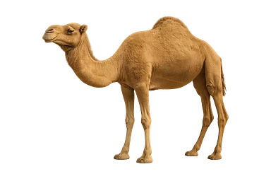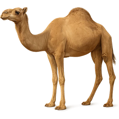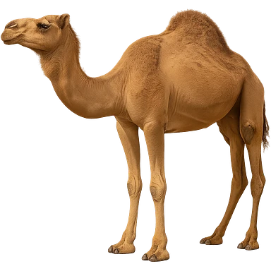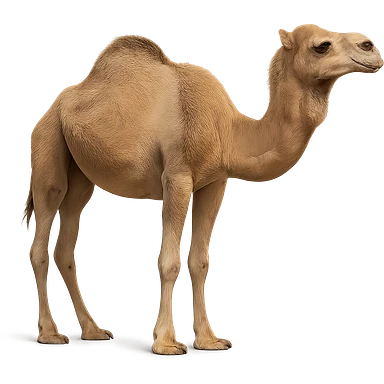 Edit the camel emoji to remove the hat, the green part of its neck, and the thing in or by its mouth. Keep all other details and style exactly like the iOS emoji style reference image. Add a soft shadow. emoji