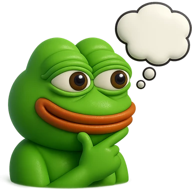 make a pepe in bright green smiling with thought bubble looking at left side in 3d style, good highlights and shadows, drop shadows image | AI Emoji Generator