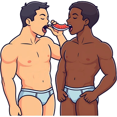White adult male dark hair,dark skin adult male, naked, sexual touching, in love,laying on the bed, sexual intercourse, orgasm ,fellatio emoji