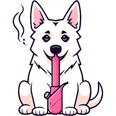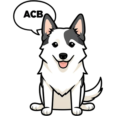 White belgian Shepard with a Speech bubble. Inside it says "A.C.A.B." emoji