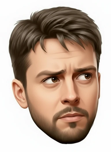 нарисуй этого человека в таком же стиле с думающим о чем то серьезном взглядом, без рук, без фона emoji