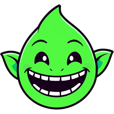 Troll face emoji with green glowing eyes and shiny teeth emoji