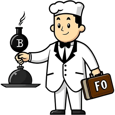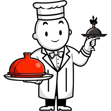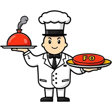 A butler holding a platter with an old-fashion bomb on it with the letters FO on the bomb emoji