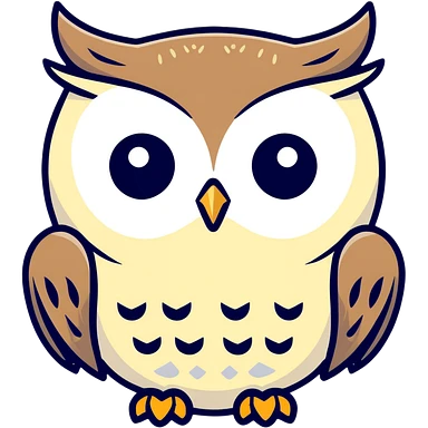 wise owl drinking coffee sitting in an armchair, cartoonish sticker style emoji