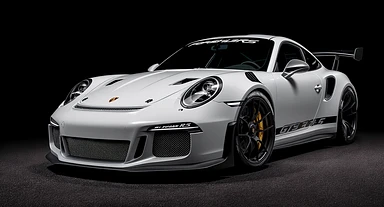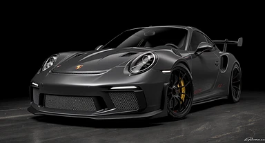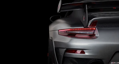 a stunning close-up of a porsche 911 gt3 rs , set against a black solid background. emoji