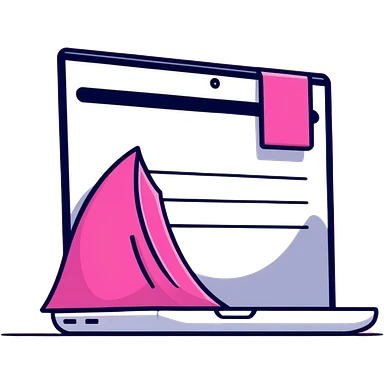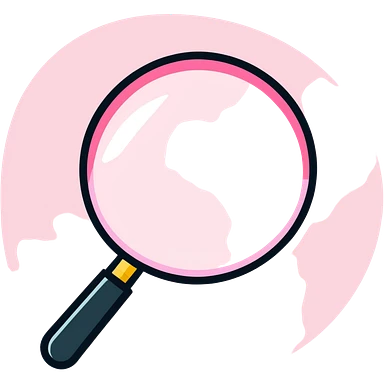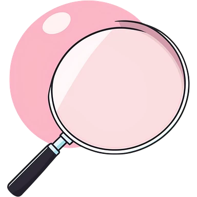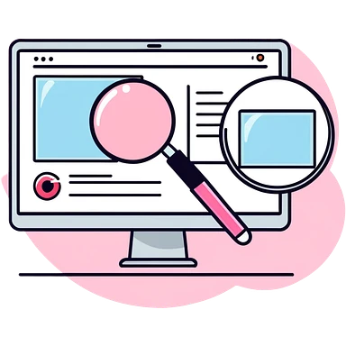 Pink Web browser on a computer with a magnifying glass emoji