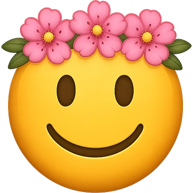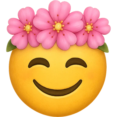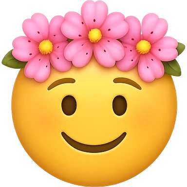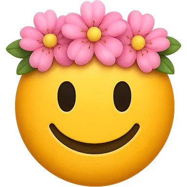yellow face with pink flower crown emoji, digital illustration, remove background emoji