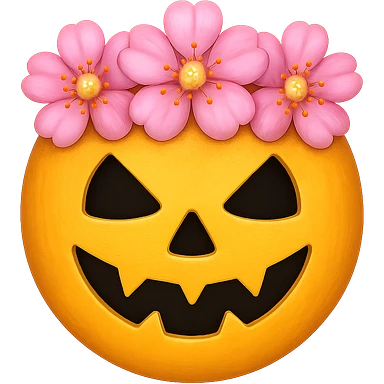 halloween yellow face with pink flower crown emoji, digital illustration, remove background emoji