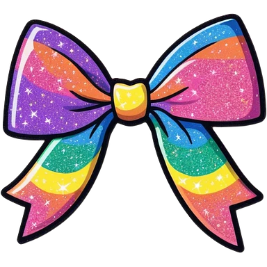 masterpiece Clean smooth lines 8000x8000px, 8k quailty, no background. Large size 3D rendering, isolated bow in black holographic glitter with a rainbow glitter effect cartoon 3D emoji concept render, close-up, facing forward, 3D emoji render, app icon, new iOS 18.4 style emoji