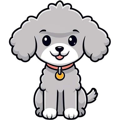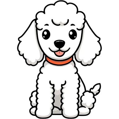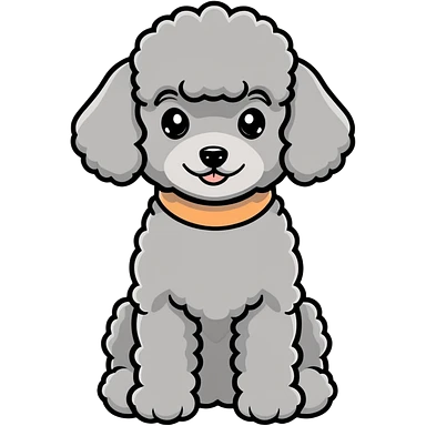 Brunette girl with long straight hair holding a white poodle dog with a black head and ears emoji