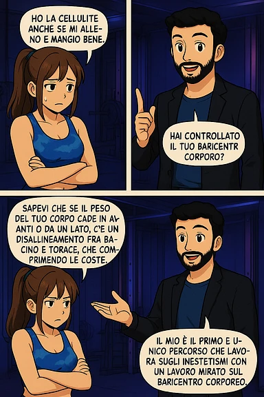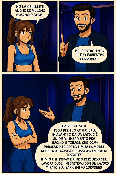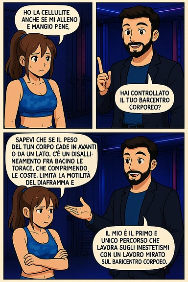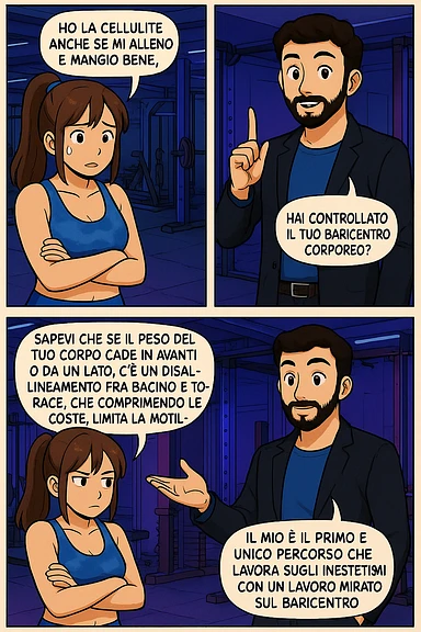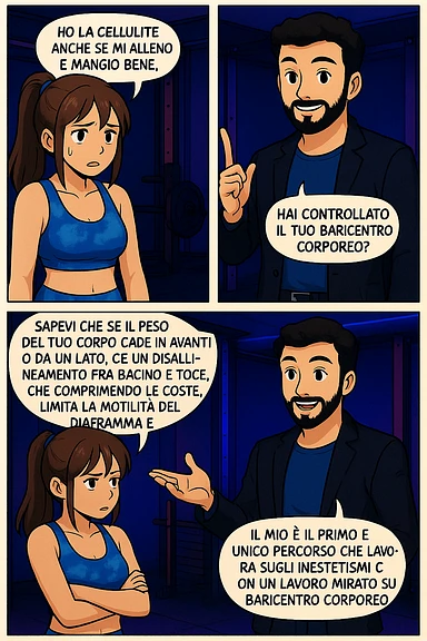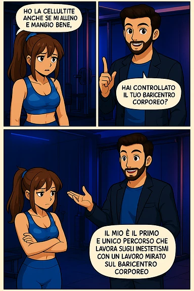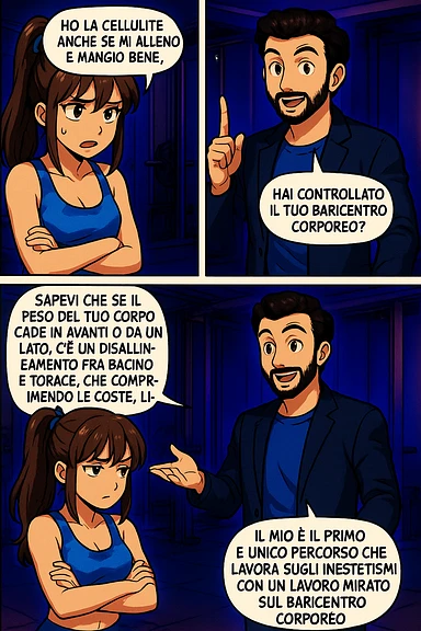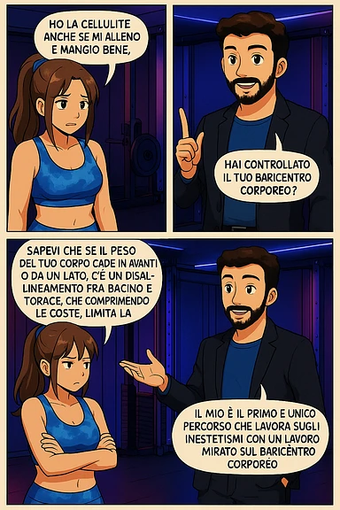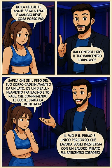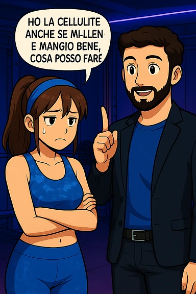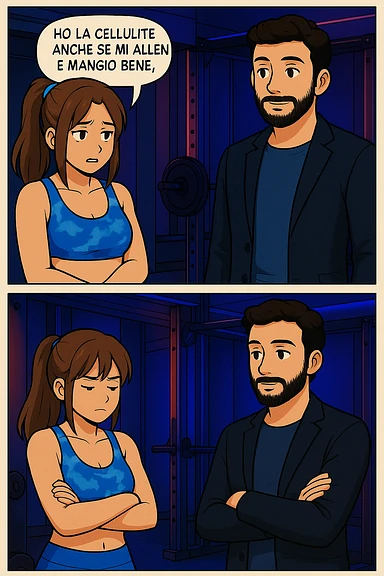 prendi spunto da queste immagini per fare: fai un webtoon/manga a colori con questa personal trainer (falle la scritta "LUNA" SU UNA TARGHETTA APPOSTA SUL TOP SPORTIVO CHE HA), che parla IN PALESTRA con una sua cliente che ha cellulite ed è leggermente in sovrappeso. LA SIGNORA è IN ABITI SPORTIVI E ascolta la trainer con attenzione. LUNA le dice le mostra un foglio con la scritta "DIETA BILANCIATA" CHE HA NELLA MANO SINISTRA E UN MANUBRIO DA PALESTRA CHE HA NELLA MANO DESTRA con espressione di INCORAGGIAMENTO. NON FARE I FUMETTI, FAI SOLO LORO COME SE DIALOGASSERO. FAI LE DUE FIGURE A FIGURA INTERA CON IL CORPO INTERAMENTE VISIBILEimage