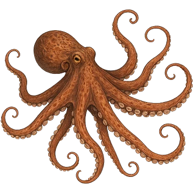 Remove the nose, make the octopus look scary, keep the purple color, with no background. Maintain the original style and details of the octopus while making it look scary and purple. image | AI Emoji Generator