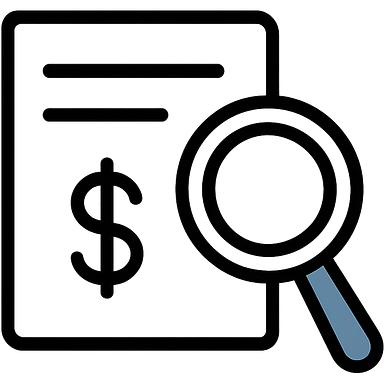 Используя такую стилистику как на картинках сгенерируй иконку, которая бы символизировала налоговую сверку - документ, рядом с ним лупа, прозрачный фон emoji