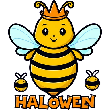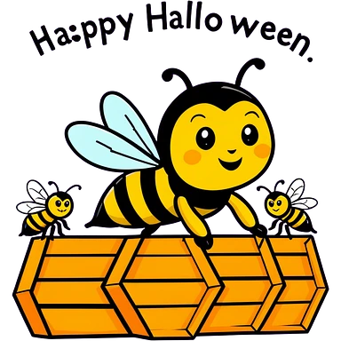 A hive of bees with the queen bee saying happy Halloween with the queen bee there emoji