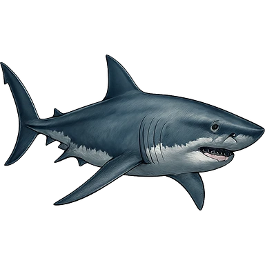 Edit the gray shark emoji to face right in a realistic style. Remove legs and sneakers, keep only the shark. Match the gray color from the reference images. emoji