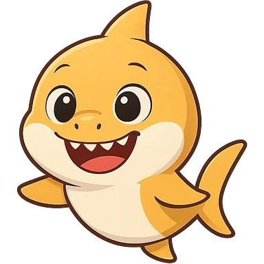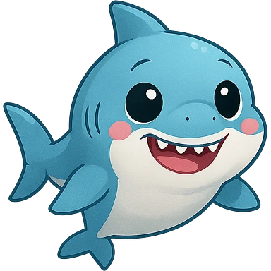 baby shark sitting on the sand, cute big eyes, photorealistic style emoji
