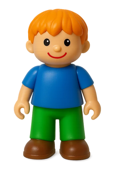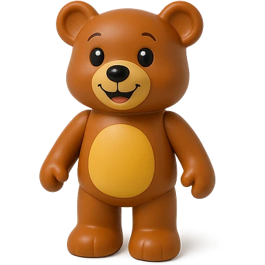 Edit the image of a beach girl to look happy and derpy with a big smile and very derpy, oversized white eyes with small black pupils looking in different directions. She should be very transparent, wearing a simple blue one-piece swimsuit, standing in a neutral pose, much smaller in the frame so her entire body is visible with no cropping. The style should resemble a retro 90's toy style: very transparent, slightly see-through, natural tan skin, brown hair, soft plastic texture, soft reflections, soft and squishy, some cloudiness, not shiny, highly detailed, appealing, no tag, no background, and no suggestive details. emoji