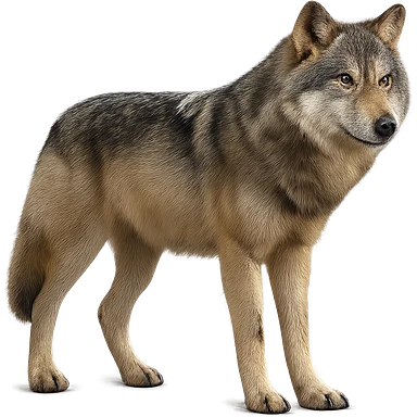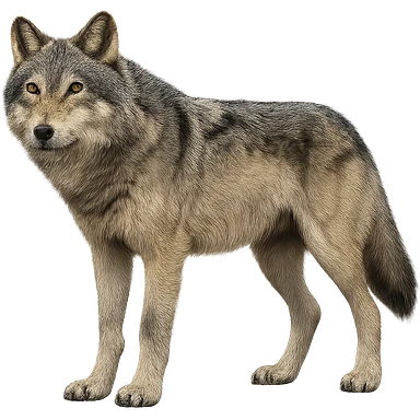Make the wolf more realistic with no background, photorealistic style. emoji