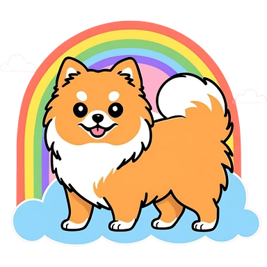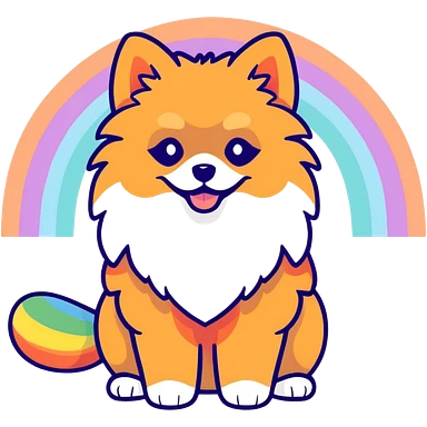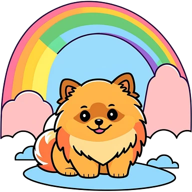 Tan Pomeranian under a rainbow image | AI Emoji Generator