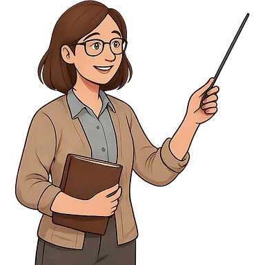 teacher with brown hair holding books, friendly classroom setting, clear facial features, professional attire emoji