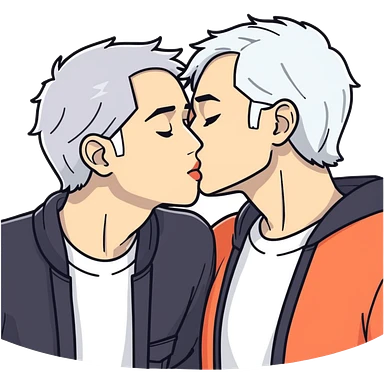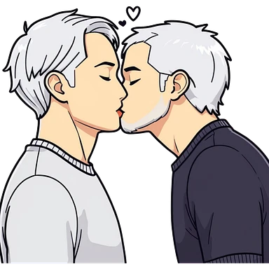 White dark hair adult male and black adult male kissing image | AI Emoji Generator