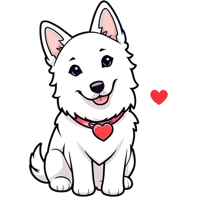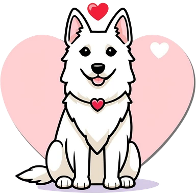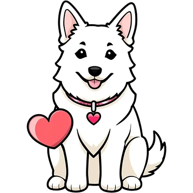 white Swiss Shepherd dog with a Glitter collar . over the Dog ist a heart emoji