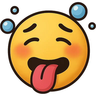 yellow face with tongue out, flushed cheeks, and bubbles, drunk expression emoji