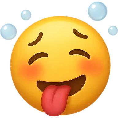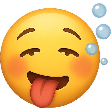 yellow face with tongue out, one eyebrow raised, bubbles, drunk expression emoji