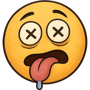 yellow face with crossed eyes, tongue out, drooling, drunk expression emoji