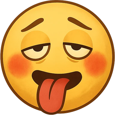 yellow face with tongue out, flushed cheeks, drunk, remove background image | AI Emoji Generator