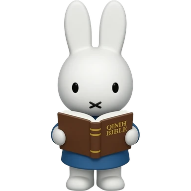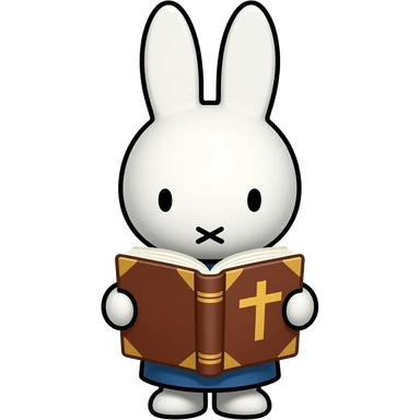 Miffy reading the Bible , no black outline, Bible , no text on the cover just a cross emoji