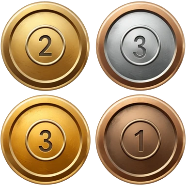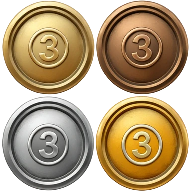 Gold badges with diamonds for paid subscriptions at different levels with the number 3 emoji