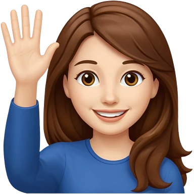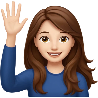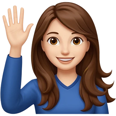 long lenght hair brown and say hi with hand emoji